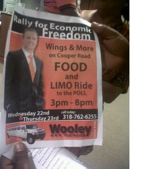 I'm sure a person of color isn't one of Shreveport, Louisiana mayoral hopeful Bryan Wooley's trusted advisors. Had he attempted to hire a person of color he would have avoided embarrassment to himself and his campaign. In an ill-conceived effort to reach Black voters, the Republican candidate thought it would be a great idea to offer Black residents of Shreveport free wings and a limo ride. While I don't find his strategy offensive I think it's safe to say it was a bit racially insensitive. The way to reach out to Blacks isn't through our stomachs and stereotypes. Why should a man who is out of touch with Shreveport's black community be mayor of a city with a Black population that exceeds 50% ? It's obvious Bryan Wooley isn't the man for the job.